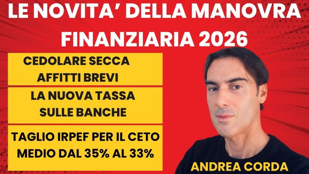 Le novità della manovra finanziaria 2026, recentemente approvata dal Consiglio dei Ministri e ora approdata in Parlamento. Sono previsti emendamenti riguardanti il ripristino della cedolare secca per gli affitti brevi al 21% e un ritocco per quanto attiene al contributo di solidarietà delle banche. Ne parlo in questo video, che ti invito a commentare oltre ad iscriverti al canale per restare sempre costantemente aggiornato. #manovra2026 #cedolareseccaaffittibrevi #tassazionebanche Andrea Corda Giornalista pubblicista, dottore di ricerca in storia contemporanea, appassionato di politica, sport, cinema e attualità Sito internet: https://andreacorda.com/ Facebook: / andrea.corda.794 Linkedin: / andrea-corda-b5a167100 X: https://x.com/home